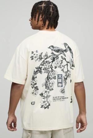 Oversize T-Shirt mit floralem Blossom Print - Ecru - S, Ecru