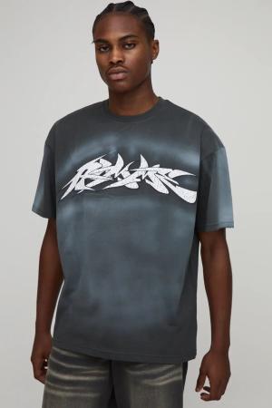 Oversize T-Shirt mit Graffiti-Print - Grau - L, Grau