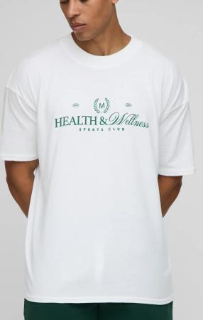 Oversize T-Shirt mit Health and Wellness Sports Club Print - Weiß - XS, Weiß