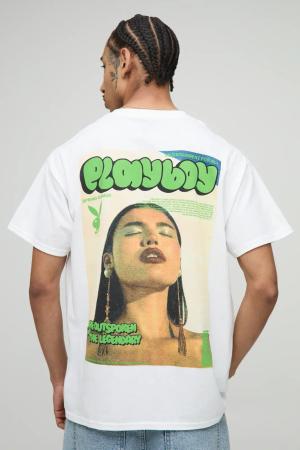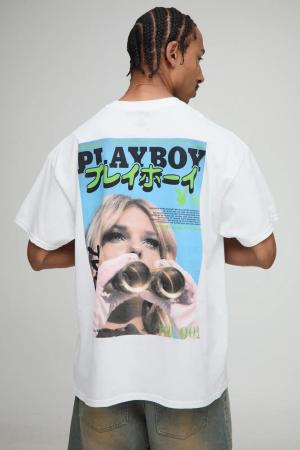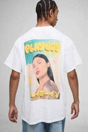 Weißes Oversize T-Shirt mit lizenziertem Playboy-Print - L, Weiß