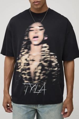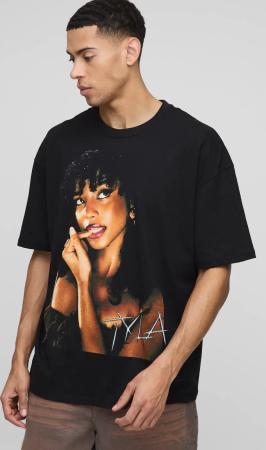 Schwarzes Oversize T-Shirt mit lizenziertem Tyla-Print - L, Schwarz