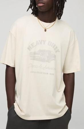 Oversize T-Shirt mit Man Slogan - Ecru - S, Ecru