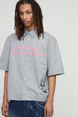 Oversized Half Sleeve Microcheck Print Shirt - Grau - S, Grau