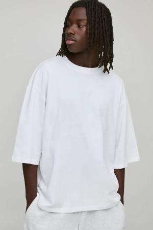 Oversized Heavyweight MAN Script Embroidered Half Sleeve T-shirt - Weiß - S, Weiß