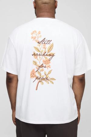 Plus Oversize T-Shirt mit floralem Print - Weiß - 2XL, Weiß