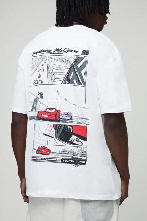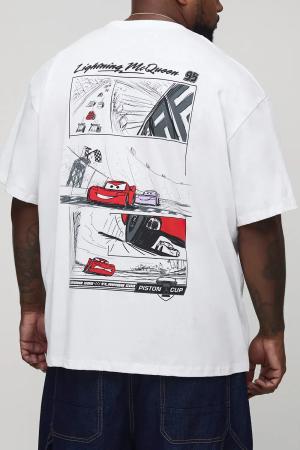 Plus Oversize T-Shirt mit lizenziertem Disney Cars Print - Weiß - 4XL, Weiß