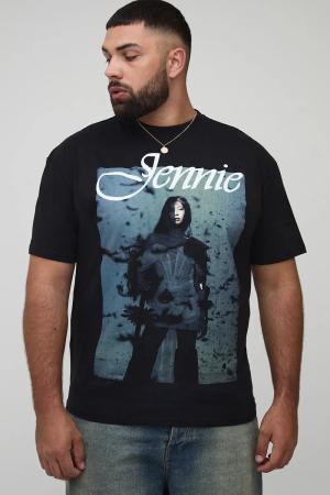 Plus Oversize T-Shirt mit lizenziertem Jennie Print - acid wash black - 5XL, acid wash black