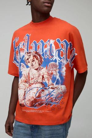 Tall Oversize T-Shirt mit Money Never Sleeps Over Naht-Detail - Orange - M, Orange