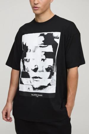 Schwarzes Oversize T-Shirt mit lizenziertem Talking Heads Print - S, Schwarz