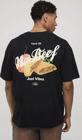 Schwarzes Oversize T-Shirt mit No Beef Just Vibes Print - S, Schwarz