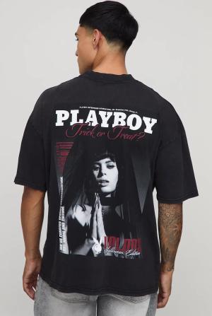 Schwarzes Oversize T-Shirt mit Playboy-Print - S, Schwarz