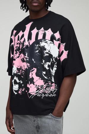 Tall kastiges Oversize T-Shirt mit Totenkopf-Print - Schwarz - S, Schwarz