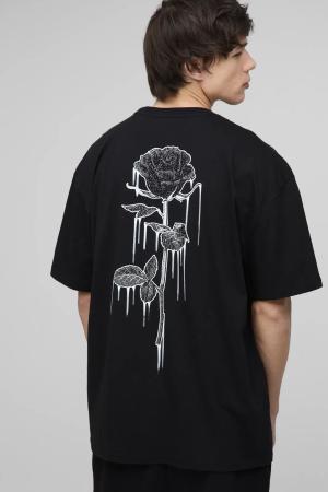 Tall Oversize T-Shirt mit floralem Print - Schwarz - S, Schwarz