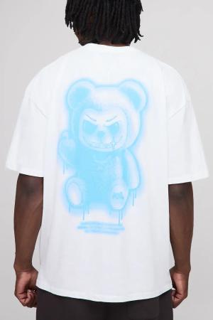 Tall Oversize T-Shirt mit Graffiti Man Evil Teddy Print - Weiß - S, Weiß
