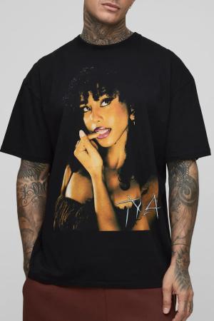 Schwarzes Oversize T-Shirt mit lizenziertem Aaliyah Print - L, Schwarz