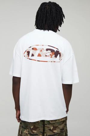 Weißes Oversize T-Shirt mit Man-Print - M, Weiß