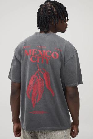 Tall Oversize T-Shirt mit Mexico Chilli Print - Schwarz - 2XL, Schwarz