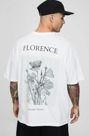 Weißes Oversize T-Shirt mit floralem Monaco-Print - S, Weiß