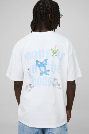Weißes Oversize T-Shirt mit lizenziertem Disney Monsters Inc Print - M, Weiß