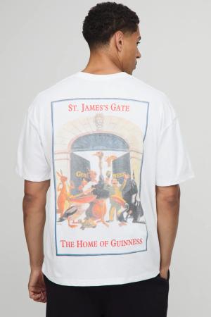 Weißes Oversize T-Shirt mit lizenziertem Guinness Print - S, Weiß