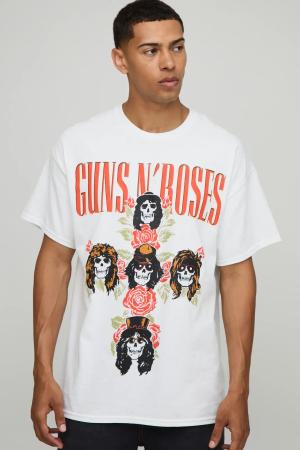 Weißes Oversize T-Shirt mit lizenziertem Guns N Roses Print - S, Weiß