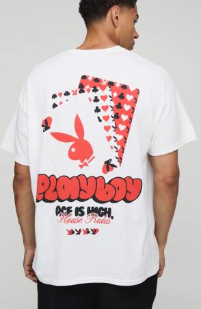 Weißes Oversize T-Shirt mit lizenziertem Playboy-Print - M, Weiß