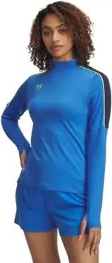 Damen Challenger Midlayer, schnelltrocknendes Fußball Funktionsshirt mit Langen Ärmeln, geschmeidiger Pullover mit 1/4-Zip,Blue Atlantis / / High Vis Yellow,XXL