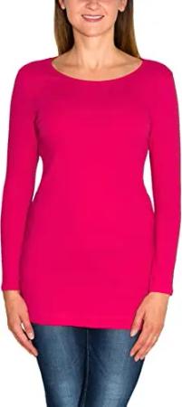 Damen Langarm Longshirt Langarmshirt Tunika Basic Shirt, Farbe: Amarant, Größe: M