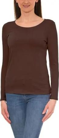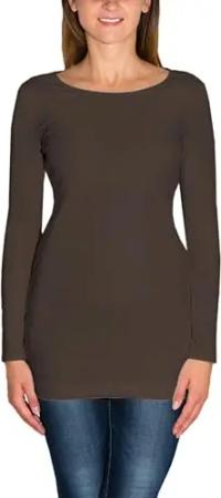 Damen Langarm Longshirt Langarmshirt Tunika Basic Shirt, Farbe: Braun, Größe: M