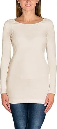 Damen Langarm Longshirt Langarmshirt Tunika Basic Shirt, Farbe: Elfenbein, Größe: XXL