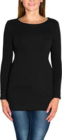 Damen Langarm Longshirt Langarmshirt Tunika Basic Shirt, Farbe: Schwarz, Größe: S