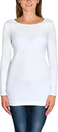 Damen Langarm Longshirt Langarmshirt Tunika Basic Shirt, Farbe: Weiß, Größe: M