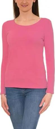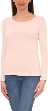 Damen Langarm Shirt mit O-Ausschnitt, Farbe: Puderrosa, Größe: XL