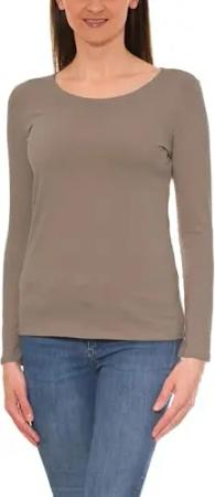 Damen Langarm Shirt mit O-Ausschnitt, Farbe: Dunkelbeige, Größe: L