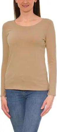 Damen Langarm Shirt mit O-Ausschnitt, Farbe: Beige Latte, Größe: M