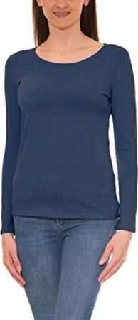 Damen Langarm Shirt mit O-Ausschnitt, Farbe: Jeans, Größe: XL