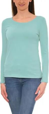 Damen Langarm Shirt mit O-Ausschnitt, Farbe: Mineralgrün, Größe: XXL