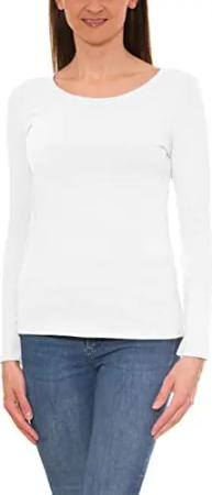 Damen Langarm Shirt mit O-Ausschnitt, Farbe: Weiß, Größe: L