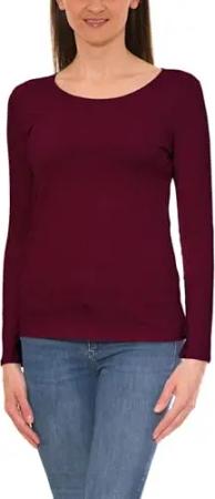 Damen Langarm Shirt mit O-Ausschnitt, Farbe: Weinrot, Größe: XL