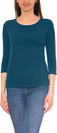 Damen Shirt 3/4 Arm mit Rundhals, Farbe: Petrolgrün, Größe: L