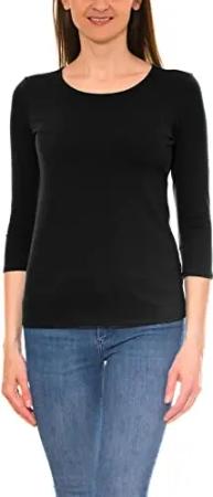 Damen Shirt 3/4 Arm mit Rundhals, Farbe: Schwarz, Größe: XXL