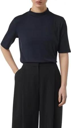 Comma Geripptes Jersey-Shirt mit Stehkragen
