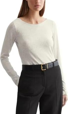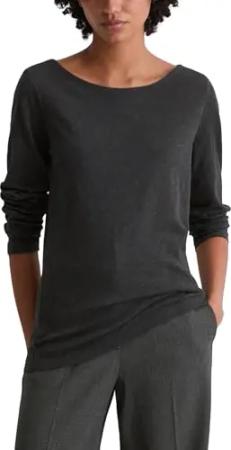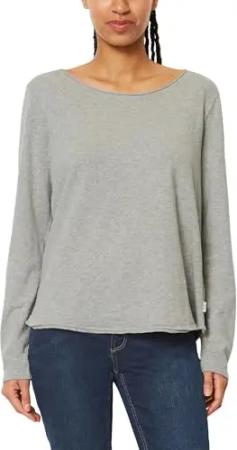 Marc OߴPolo Damen Langarmshirt aus Bio-Baumwolle mit U-Boot-Ausschnitt, Grau (Grey Granite Melange), XXL