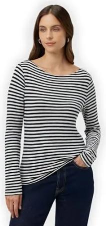 Marc OߴPolo Damen Langarmshirt aus Bio-Baumwolle mit U-Boot-Ausschnitt