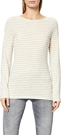 Marc OߴPolo Damen Langarmshirt aus Bio-Baumwolle mit U-Boot-Ausschnitt, Beige (Multi/Pure Sand), M