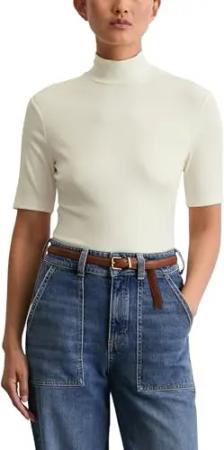 Marc OߴPolo Damen T-Shirt mit Rollkragen Slim Fit, Cremefarben (White Cotton), XXS