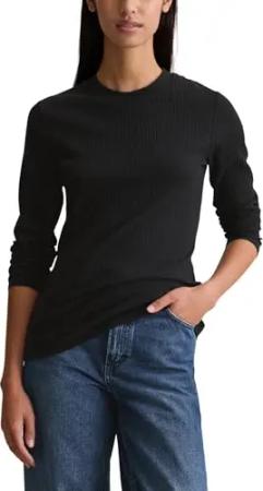Marc OߴPolo Denim Damen Langarmshirt mit Stretch-Anteil gerippt, Schwarz (Black), S