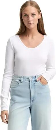 Damen 1048986 Slim Fit Langarmshirt Mit Rippstruktur, 20000 - White, M EU