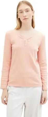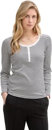 Damen Henley Longsleeve mit Streifen aus Bio-Baumwolle, 35225 - Apricot Offwhite Stripe Ck, XXL