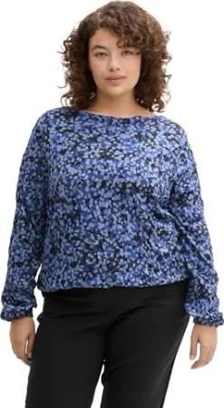 Damen Plus Size - Langarmshirt mit Streifenmuster, blau, Gestreift, Gr. 50